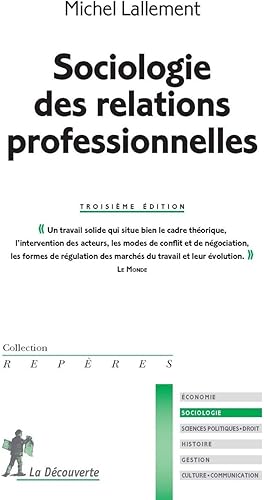 Sociologie des relations professionnelles de Michel ~ Ce livre présente les identités et les stratégies des acteurs des relations professionnelles (syndicats de salariés, organisations patronales, État). Une investigation large met en exergue l'existence de quelques configurations typiques, qui s'opposent par les formes de représentation des intérêts, le niveau de négociation ou encore par le mode de confrontation sociale dominant. A la .