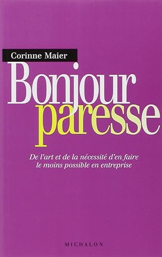 Bonjour paresse — Wikipédia ~ Bonjour paresse : De l'art et de la nécessité d'en faire le moins possible en entreprise est un livre de Corinne Maier paru le 29 avril 2004. L'auteur y explique pourquoi et comment en faire le moins possible dans une grande structure (privée ou publique). Histoire d'un succès. Le titre du livre est une référence explicite à Bonjour tristesse, le premier roman de Françoise Sagan sorti .