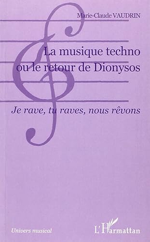 La musique techno ou le retour de Dionysos: Je rave, tu ~ La musique techno ou le retour de Dionysos: Je rave, tu raves, nous rêvons. Marie-Claude Vaudrin . Editions L'Harmattan, Apr 1, 2004 - Music - 160 pages. 0 Reviews. Notre époque connaît une multiplication des événements festifs. Mais mis à part l'aspect commercial qui prolonge la durée des fêtes, pourquoi le désir festif est-il présent aujourd'hui? Quelle place y tient la musique .